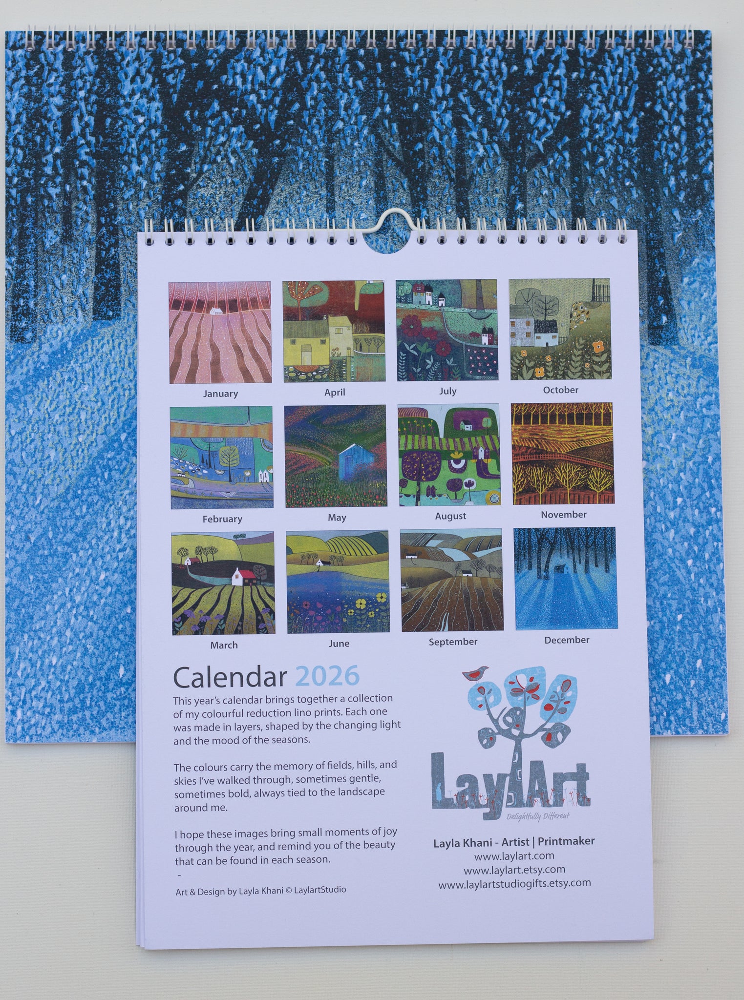 Bring a touch of art to even the smallest spaces with this A5 2026 wall calendar, featuring twelve colourful linocut prints. Each page combines the artwork and monthly dates in a compact format that’s easy to hang or keep close by for everyday planning.